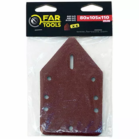 Patins abrasifs delta auto-agrippants 80 x 105 x 110 mm Grain 2×40, 2×80 et 2×120 – Lot de 6