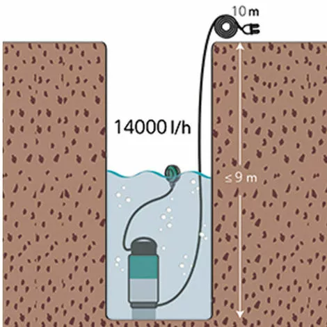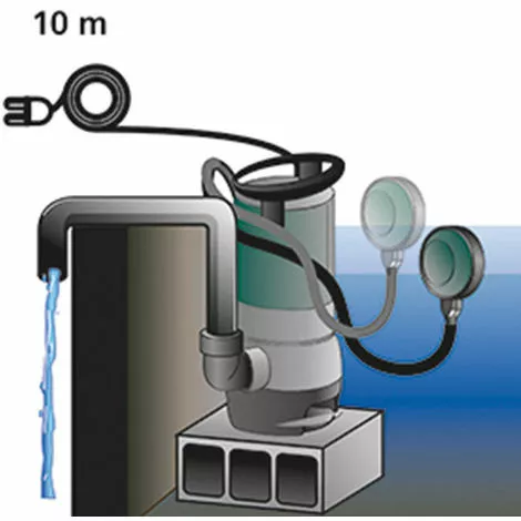 La longueur du cable de 10 m permet de vider d’important réservoir d’eau