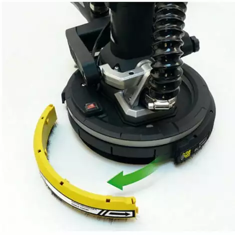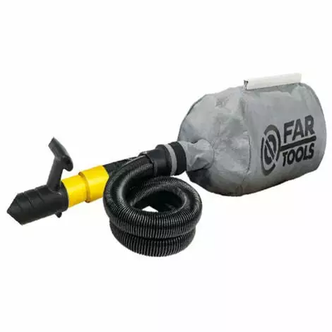 Livrée pliée en sac de transport, avec 1 flexible d’aspiration de 4 m, 1 sac de récupération des poussières, 6 abrasifs, 3 disques mailles.